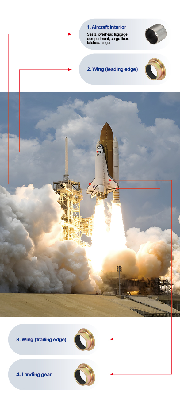 In order to meet the diverse application needs inside the aircraft, we have carefully designed various sliding bearing products. Whether it's the seats, hinges, latches, or overhead luggage compartment, our bearings can achieve efficient and stable operation, creating a more comfortable and convenient riding environment for passengers.